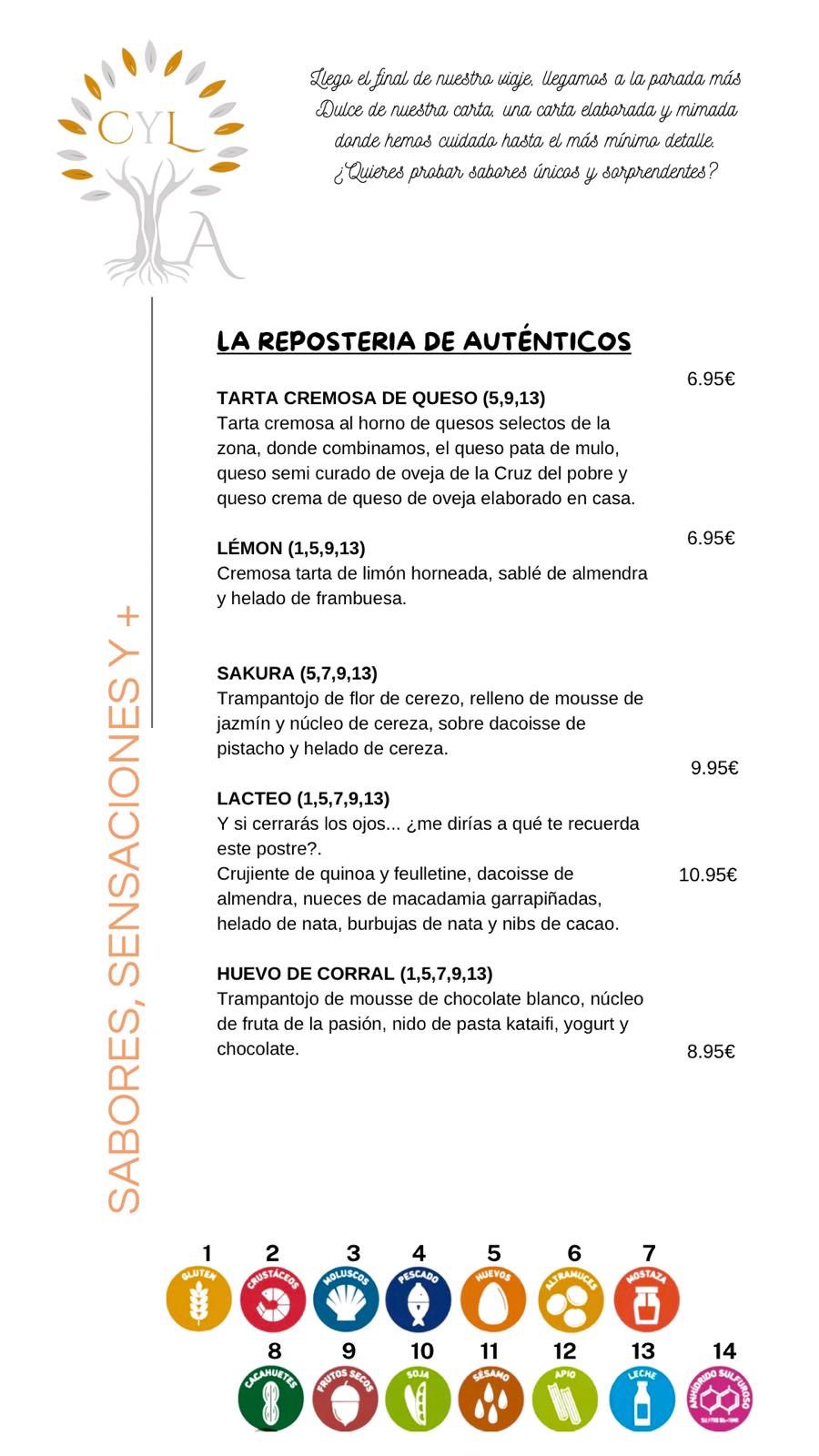 La Tapería Nuestra Carta En La Tapería de Autenticos CyL queremos ofreceros una selección de la mejor gastronomia de la zona, con platos de calidad cuidadosamente elaborados. Tradición y vanguardia se unen al servicio de tu paladar Carta Postres